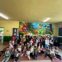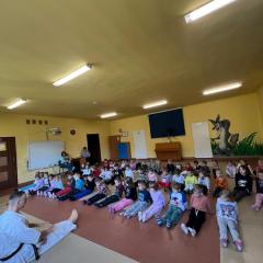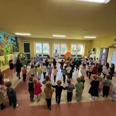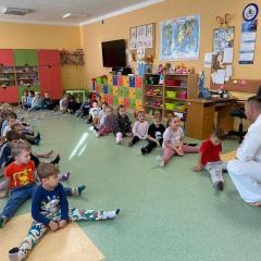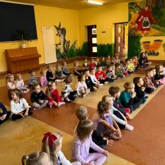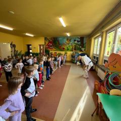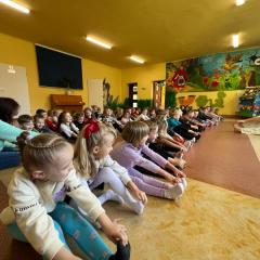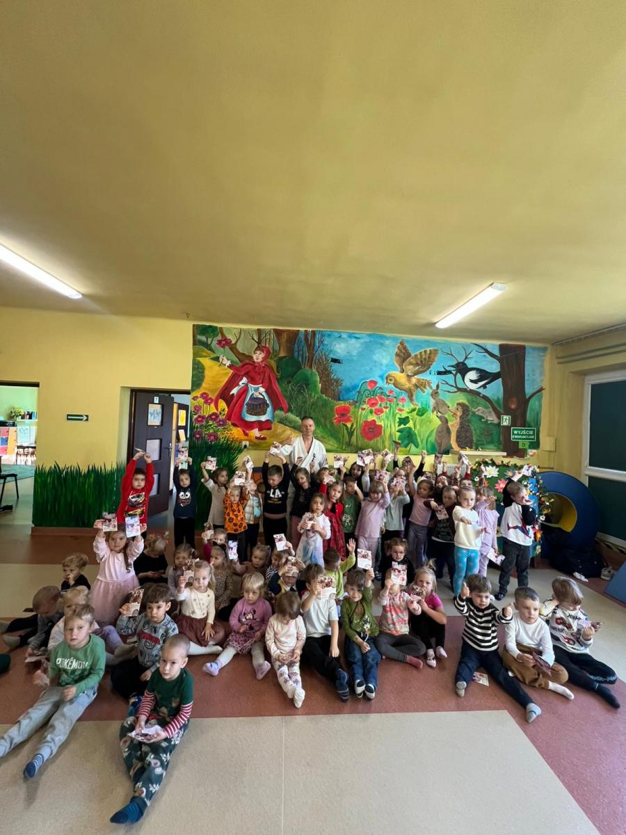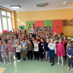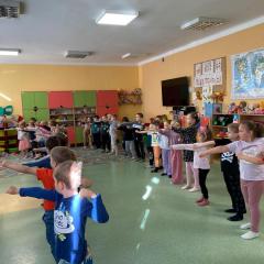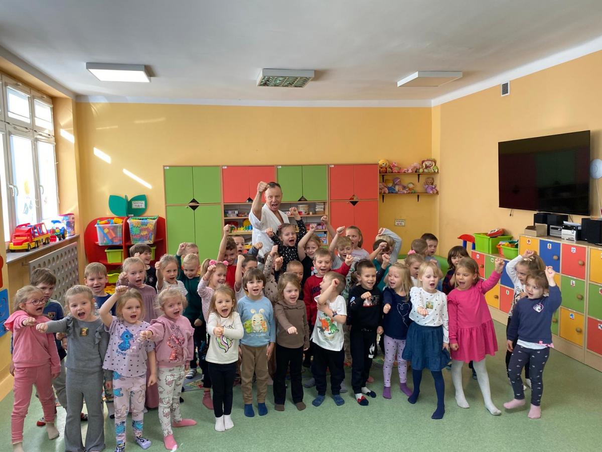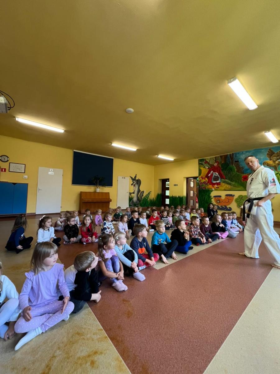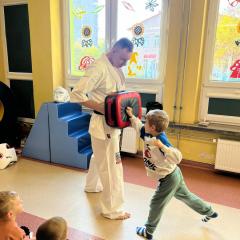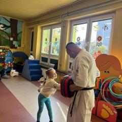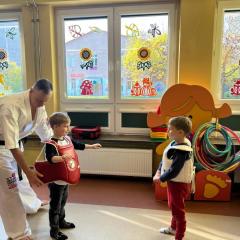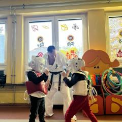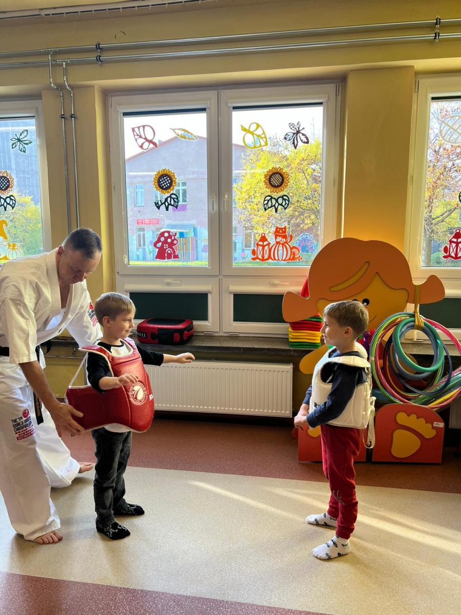 Spotkanie z panem Piotrem Kęćko, który trenuje karate miało na celu promowanie aktywności fizycznej, dyscypliny i szacunku już od najmłodszych lat. Trener (Sensei) wyjaśniał czym jest karate, pokazał strój (kimono) oraz przeprowadził mini-trening z rozgrzewką i prostymi technikami karate. Dzieci miały okazję spróbować różnorodnych ćwiczeń i dowiedziały się, że karate służy głównie do obrony. Spotkanie było dla przedszkolaków ciekawe, aktywne i pełne pozytywnych wrażeń.