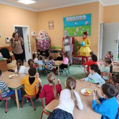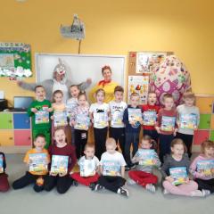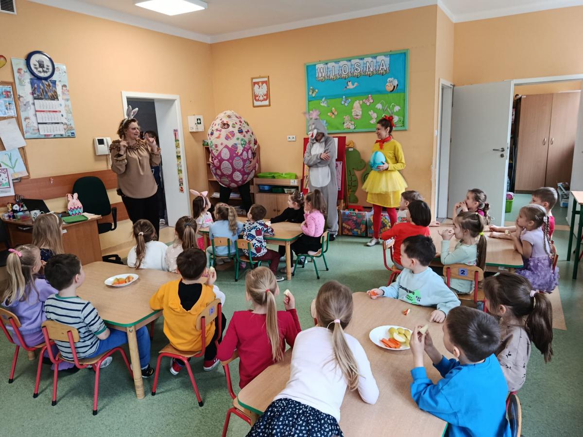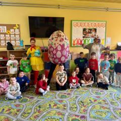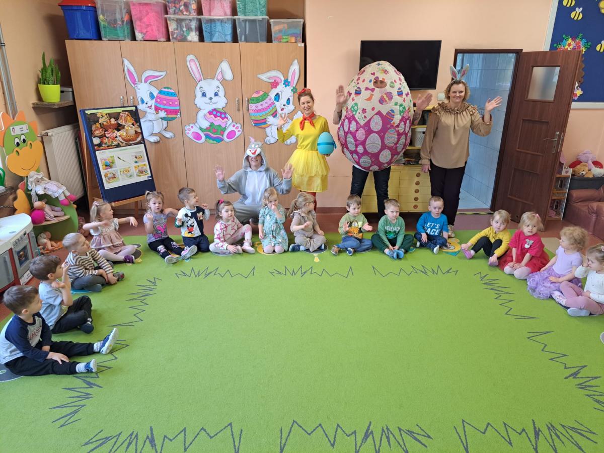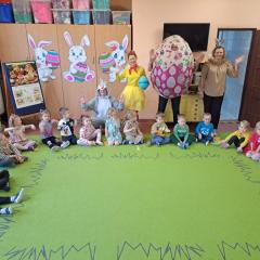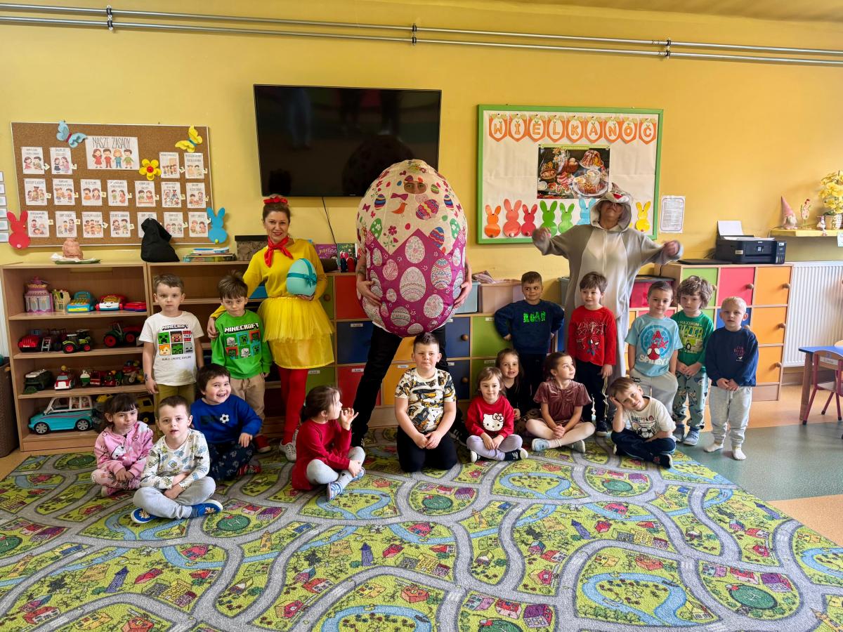 ​W czwartek do naszego przedszkola przybył Zajączek Wielkanocny, aby pobawić się z dziećmi w związku ze zbliżającymi się Świętami Wielkanocnymi. Głównym celem tego spotkania było przybliżenie tradycji wielkanocnych oraz rozwijanie empatii i umiejętności społecznych poprzez wspólną zabawę. Wychowankowie wzmacniali więzi w grupie podczas gier i zabaw z jajkiem, a także otrzymali upominki. 🥚🥚🥚Serdecznie dziękujemy Zajączkowi za odwiedziny🐰🐰🐰 !!!