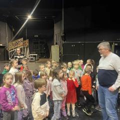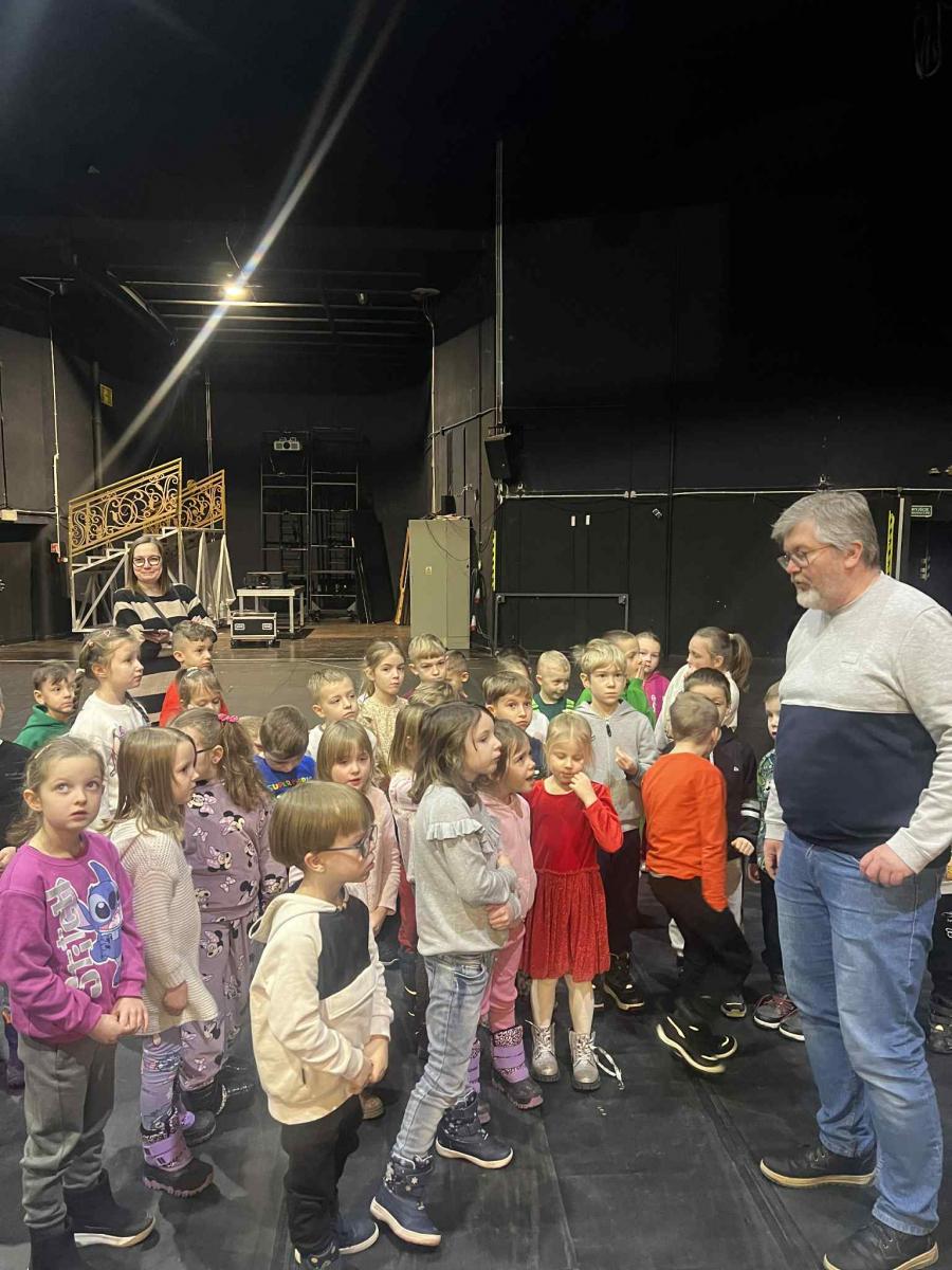 Dnia 7.01.2026 dzieci z grupy III I V uczestniczyły w wycieczce do Kieleckiego Centrum Kultury. Pracownicy instytucji oprowadzili grupę po obiekcie, pokazując m.in. garderobę (garderobiarnię), gdzie znajdują się kostiumy, dużą i małą scenę, widownię oraz zaplecze techniczne. Dzieci miały okazję zobaczyć wszystkie pomieszczenia od strony organizacyjnej i technicznej. Podczas zwiedzania pracownicy opowiadali, czym się zajmują, jak wygląda ich praca oraz jakie zajęcia artystyczne i kulturalne są prowadzone w Kieleckim Centrum Kultury. Wycieczka była bardzo interesująca i poszerzyła wiedzę dzieci na temat funkcjonowania instytucji kultury.