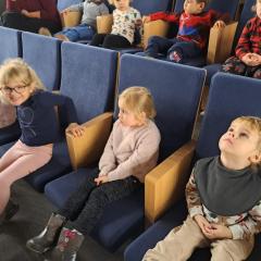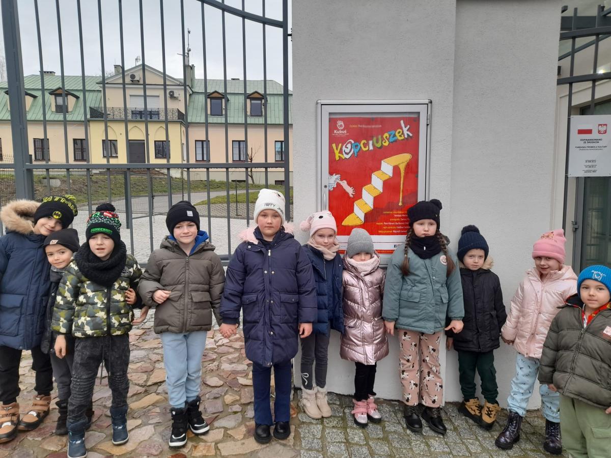 Dzisiaj przedszkolaki miały przyjemność odwiedzić Teatr Lalki i Aktora Kubuś w Kielcach. Dzieci z zaciekawieniem obejrzały spektakl pod tytułem ,,Kopciuszek". Pełne wrażeń, zadowolenia z kontaktu ze sztuką dzieci autokarem wróciły do przedszkola i opowiadały paniom o swoich wrażeniach.