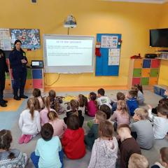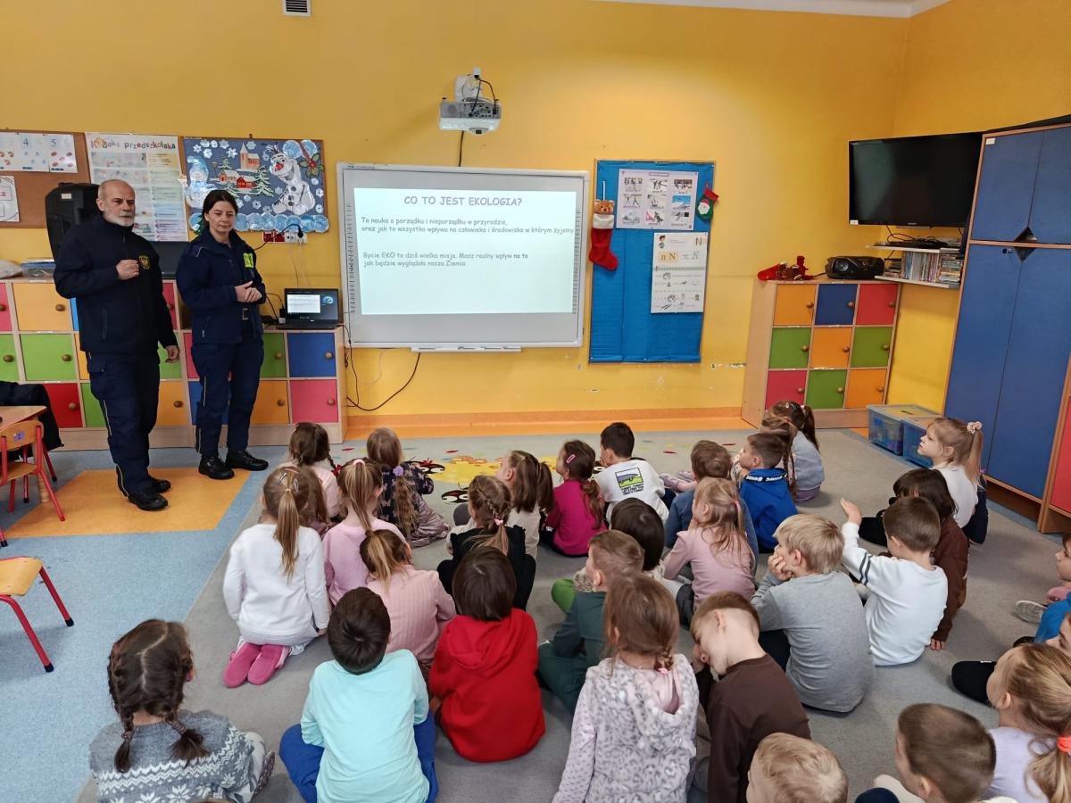 Dzisiaj nasze przedszkole odwiedzili pracownicy Straży Miejskiej w Kielcach. Podczas spotkania zostały przeprowadzone zajęcia edukacyjne na temat ekologii. Wychowankowie dowiedzieli się, jak segregować śmieci, jak oszczędzać wodę i prąd, oraz przypomnieli sobie numer alarmowy 112. Wizyta Straży Miejskiej to świetna okazja, by nauczyć dzieci dbania o środowisko poprzez zabawę i autorytet munduru.
