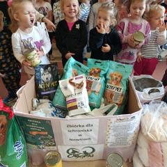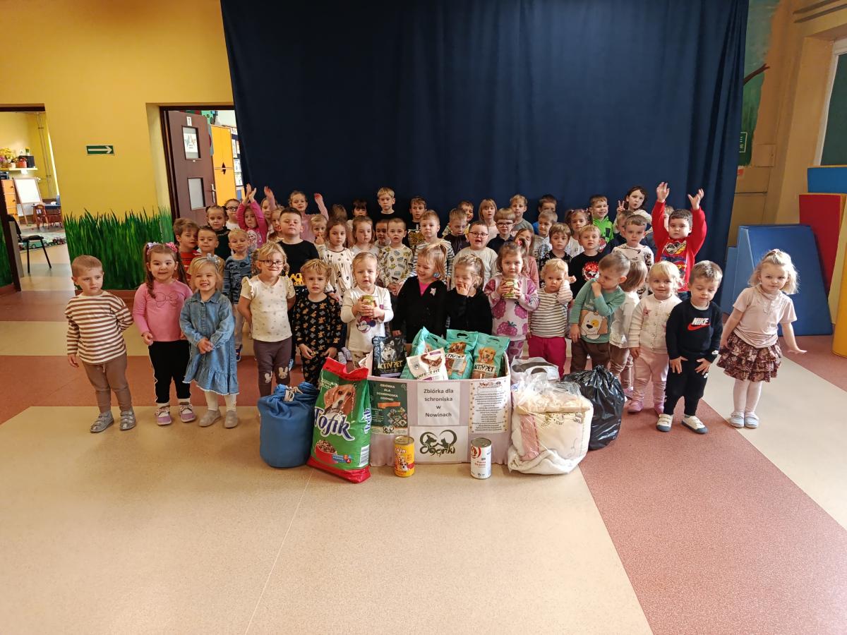 W piątek zakończyła się zbiórka dla potrzebujących, bezdomnych zwierząt ze schroniska OGONKI w Nowinach. Celem akcji charytatywnej zorganizowanej przez nasze przedszkole była nauka dobroci, wzbudzanie empatii i wrażliwości na potrzeby słabych i niechcianych zwierząt czekających na adopcję. Podczas tej akcji zebrano różne dary takie jak: karmy suche, mokre, koce, kołdry, płyny i inne potrzebne rzeczy. Serdecznie dziękujemy wszystkich rodzicom, którzy wzięli w niej udział i wspomogli schronisko bezinteresownie. DZIEKUJEMY!!! :))))))
