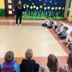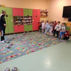 Wczoraj w przedszkolu przy ul. Górniczej i dzisiaj przy ul. Sowiej odwiedził nas trener Akademii Piłkarskiej DAP Kielce. Każda grupa mogła uczestniczyć w zajęciach sportowych zorganizowanych przez niego. Dzieci z radością brały udział w każdym zadaniu piłkarskim. Zajęcia miały na celu propagowanie aktywności fizycznej wśród dzieci i zachęcenie do udziału w tego typu zajęciach, ponieważ ruch to zdrowie ☺️💪🏃.