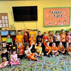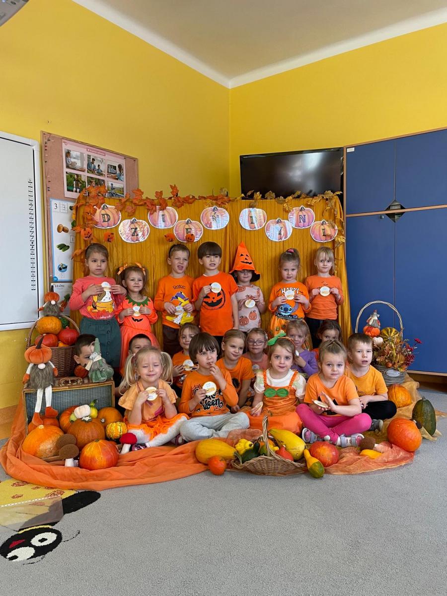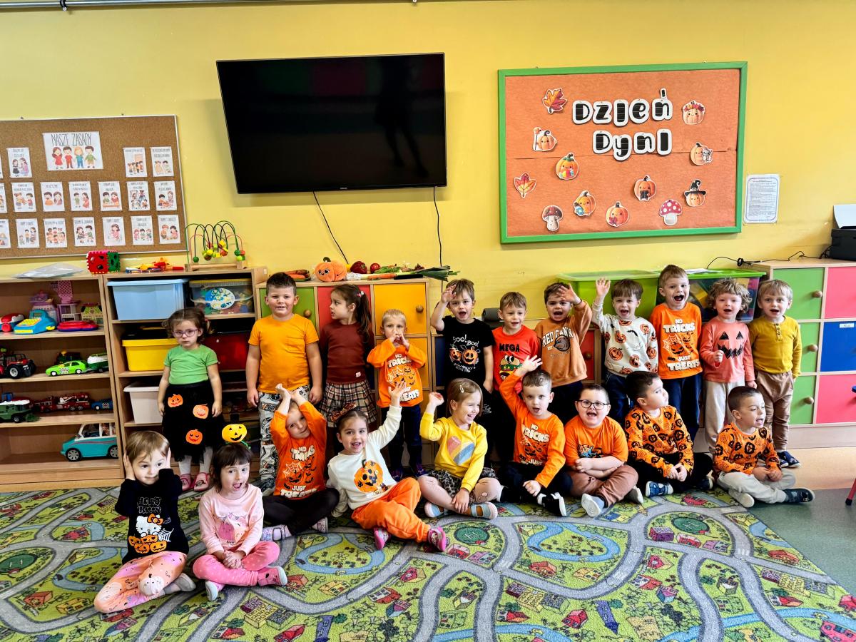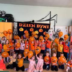 W ostatnich dniach nasze przedszkole zrobiło się pomarańczowe w związku ze świętowaniem Dnia Dyni. Był to radosny, pełen wrażeń i różnorodnych zajęć dzień. Dzieci i panie były ubrane na pomarańczowo lub z motywem dyniowym co stworzyło wspaniały nastrój dla tego jesiennego święta. Podczas zajęć przedszkolaki nabyły niezbędną wiedzę na temat dyni oraz uczestniczyły w zabawach z jej udziałem. Były to zajęcia dydaktyczne, ruchowe, plastyczne, sensoryczne w zależności od grupy. Dzień zakończył się wystawą prac plastycznych, oraz poczęstunkiem zorganizowanym przez Radę Rodziców.